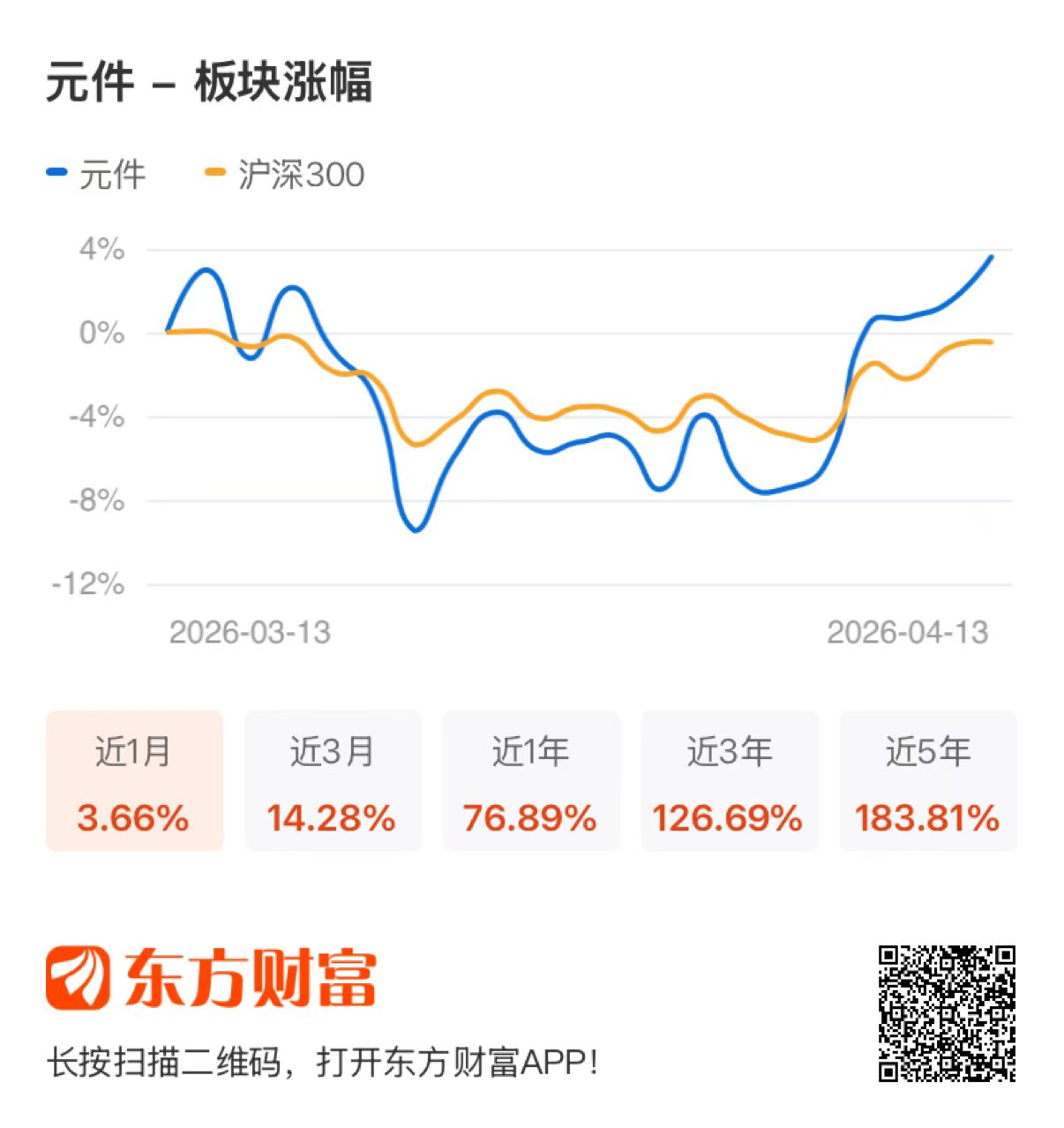 4月13日,A股三大指数今日集体收涨,创业板指再创2021年12月以来阶段新高。截止收盘,沪指涨0.06%,收报3988.56点;深证成指涨0.69%,收报14407.86点;创业板指涨0.80%,收报3476.44点。盘面上,元件行业板块涨2.11%;个股方面,泰晶科技、兴森科技涨停,生益电子、明阳电路等均有不同程度上涨。