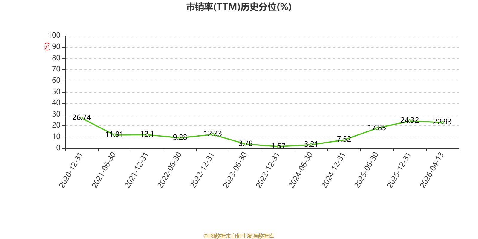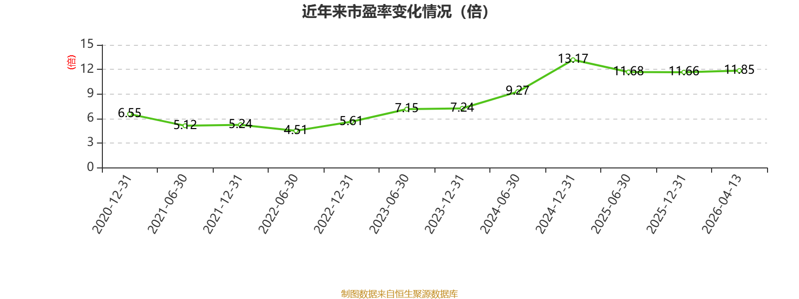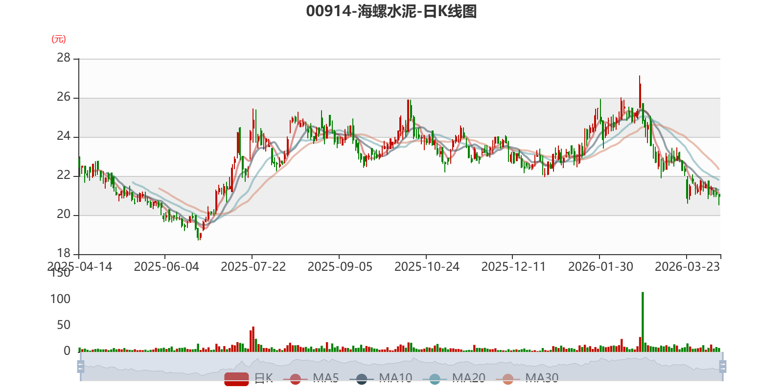 以4月13日收盘价计算,海螺水泥目前市盈率(TTM)约11.85倍,市净率(TTM)约0.52倍,市销率(TTM)约1.22倍。