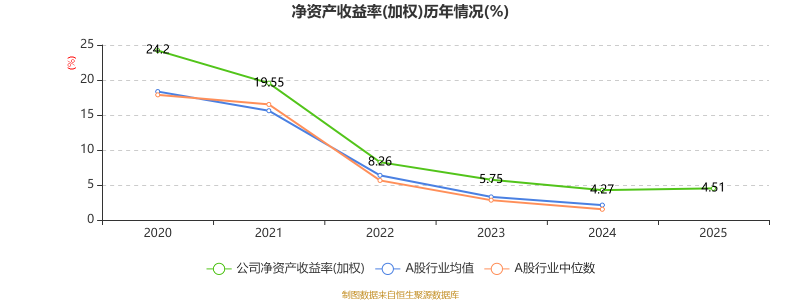 数据显示,2025年公司平均净资产收益率为4.51%,较上年同期上升0.24个百分点。