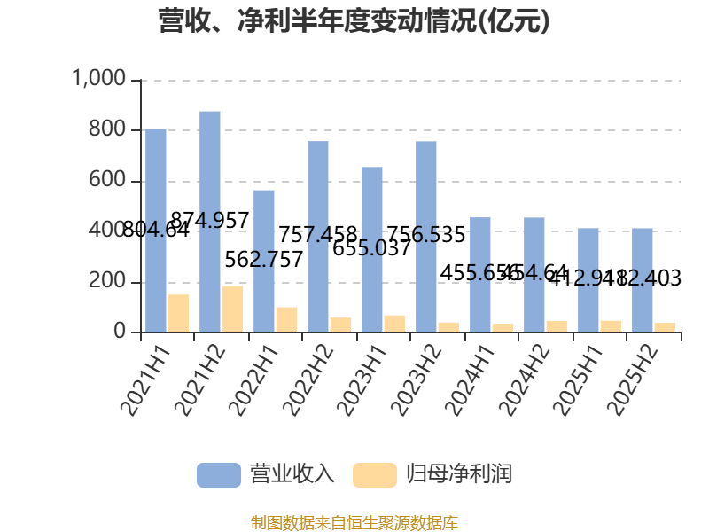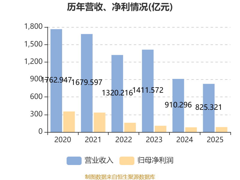 中证智能财讯海螺水泥(00914)4月13日披露2025年度报告。报告期内,公司实现营业收入825.32亿元,同比下降9.33%;归母净利润84.64亿元,同比增长5.12%;据报告显示,海螺水泥基本每股收益为1.6元,平均净资产收益率为4.51%。公司2025年分配预案为:每股派息0.61元。