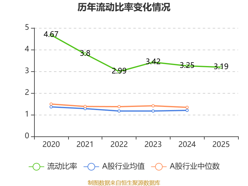 2025年,公司流动比率为3.19,速动比率为2.92。
