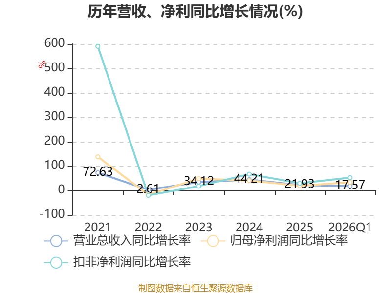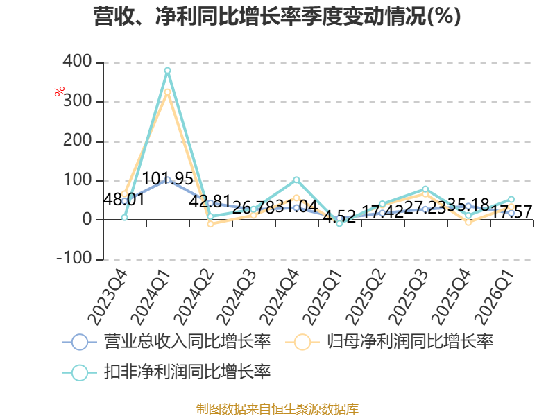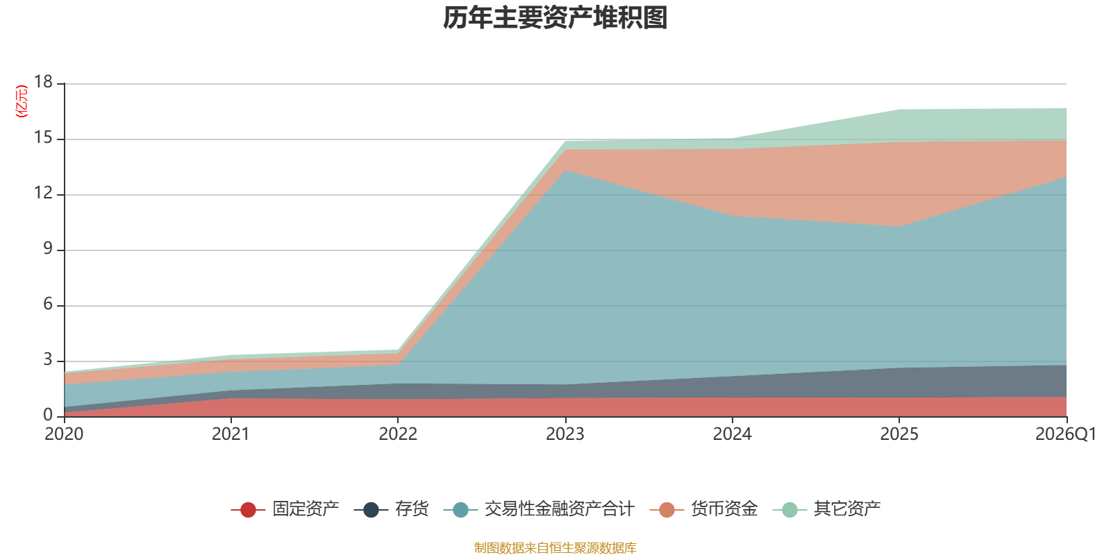 资产重大变化方面,截至2026年一季度末,公司货币资金较上年末减少56.82%,占公司总资产比重下降15.72个百分点;交易性金融资产合计较上年末增加33.05%,占公司总资产比重上升14.97个百分点;在建工程合计较上年末增加723.05%,占公司总资产比重上升1.41个百分点;应收票据及应收账款较上年末减少29.91%,占公司总资产比重下降1.38个百分点。