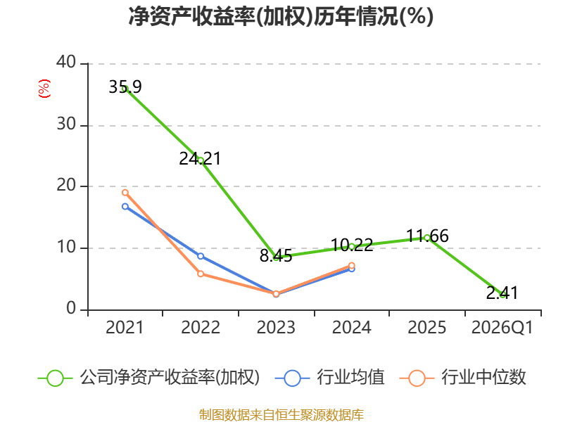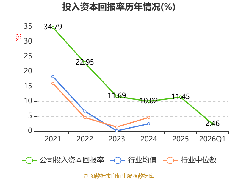 盈利能力方面, 2026年一季度公司加权平均净资产收益率为2.41%,同比上升0.41个百分点。公司2026年第一季度投入资本回报率为2.46%,较上年同期上升0.46个百分点。