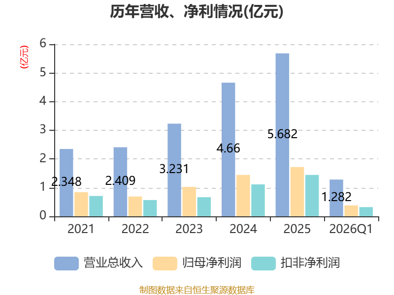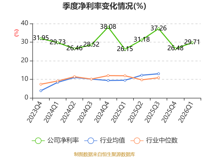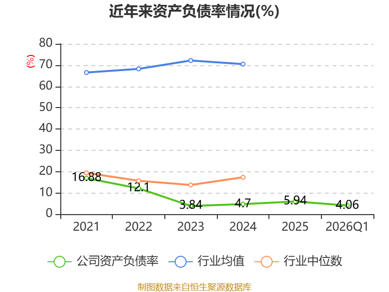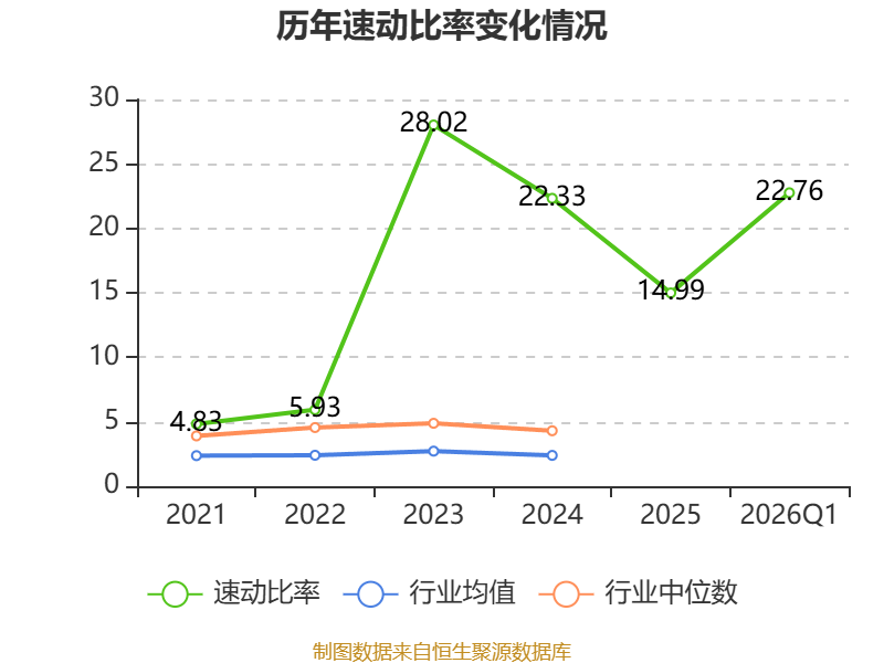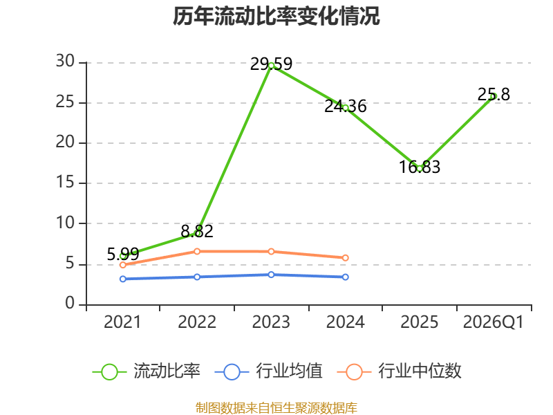 2026年第一季度,公司流动比率为25.8,速动比率为22.76。