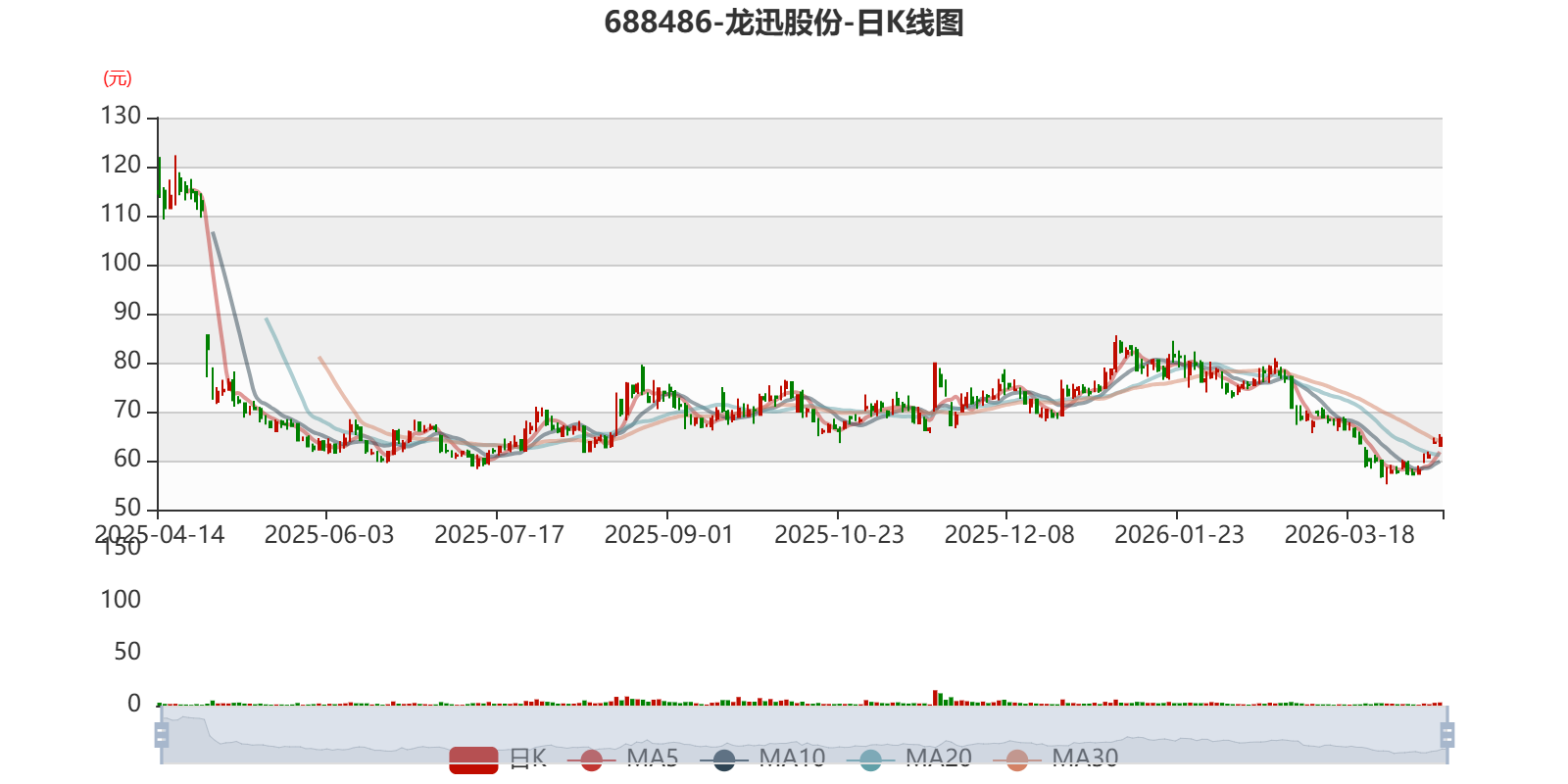 以4月13日收盘价计算,龙迅股份目前市盈率(TTM)约为47.49倍,市净率(LF)约5.4倍,市销率(TTM)约14.68倍。