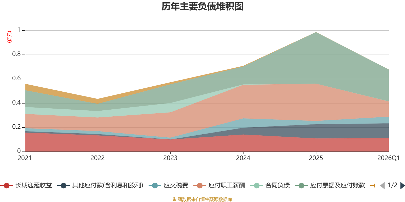 负债重大变化方面,截至2026年一季度末,公司应付职工薪酬较上年末减少59.07%,占公司总资产比重下降1.1个百分点;应付票据及应付账款较上年末减少38.44%,占公司总资产比重下降0.99个百分点;应交税费较上年末增加104.78%,占公司总资产比重上升0.17个百分点;其他应付款(含利息和股利)较上年末增加5.71%,占公司总资产比重上升0.04个百分点。