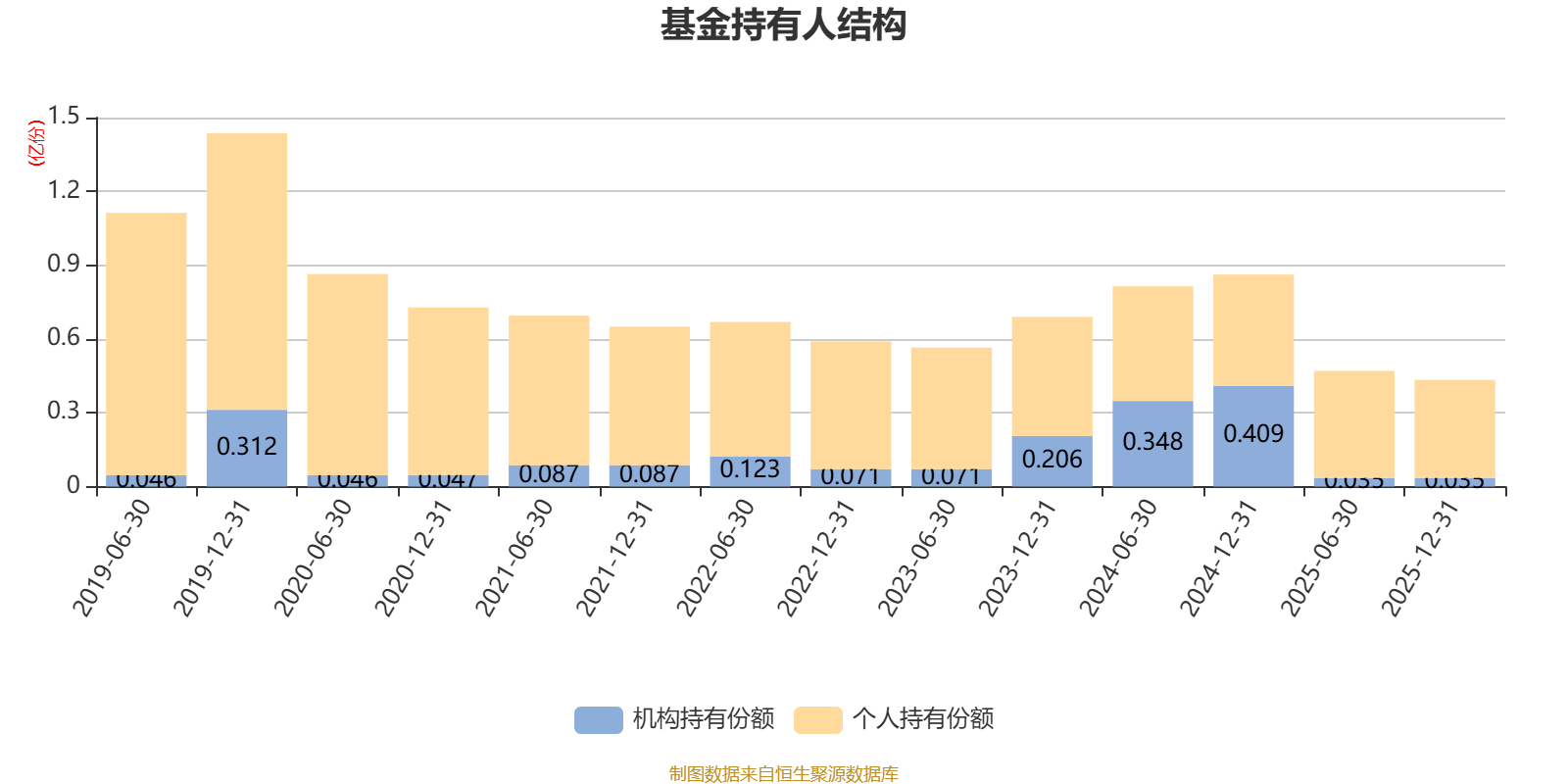 截至2025年12月31日,基金持有人共计2960户,合计持有4334.09万份。其中管理人员工持有9883.17份,占比0.02%,机构持有份额占比7.99%,个人投资者占比92.01%。