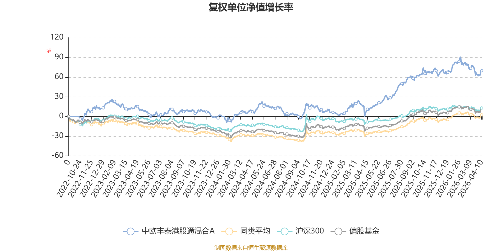 截至4月10日,中欧丰泰港股通混合A近三个月复权单位净值增长率为-5.56%,位于同类可比基金507/621;近半年复权单位净值增长率为-0.30%,位于同类可比基金431/621;近一年复权单位净值增长率为59.58%,位于同类可比基金127/618;近三年复权单位净值增长率为51.53%,位于同类可比基金72/559。