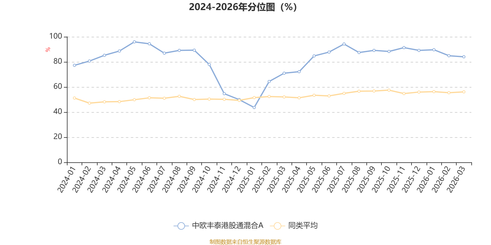 通过所选区间该基金净值增长率分位图,可以观察该基金与同类基金业绩比较情况。图为坐标原点到区间内某时点的净值增长率在同类基金中的分位数。
