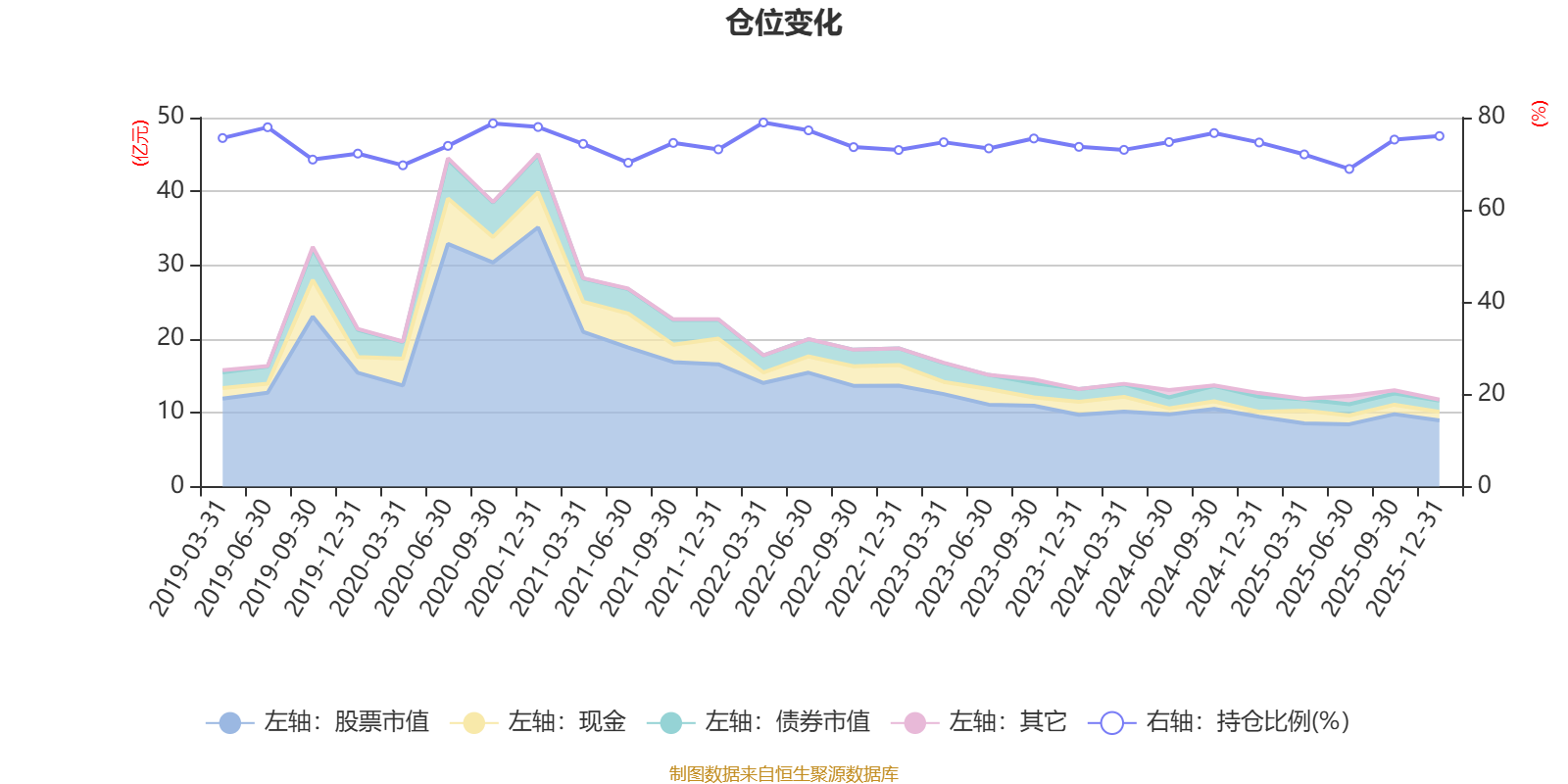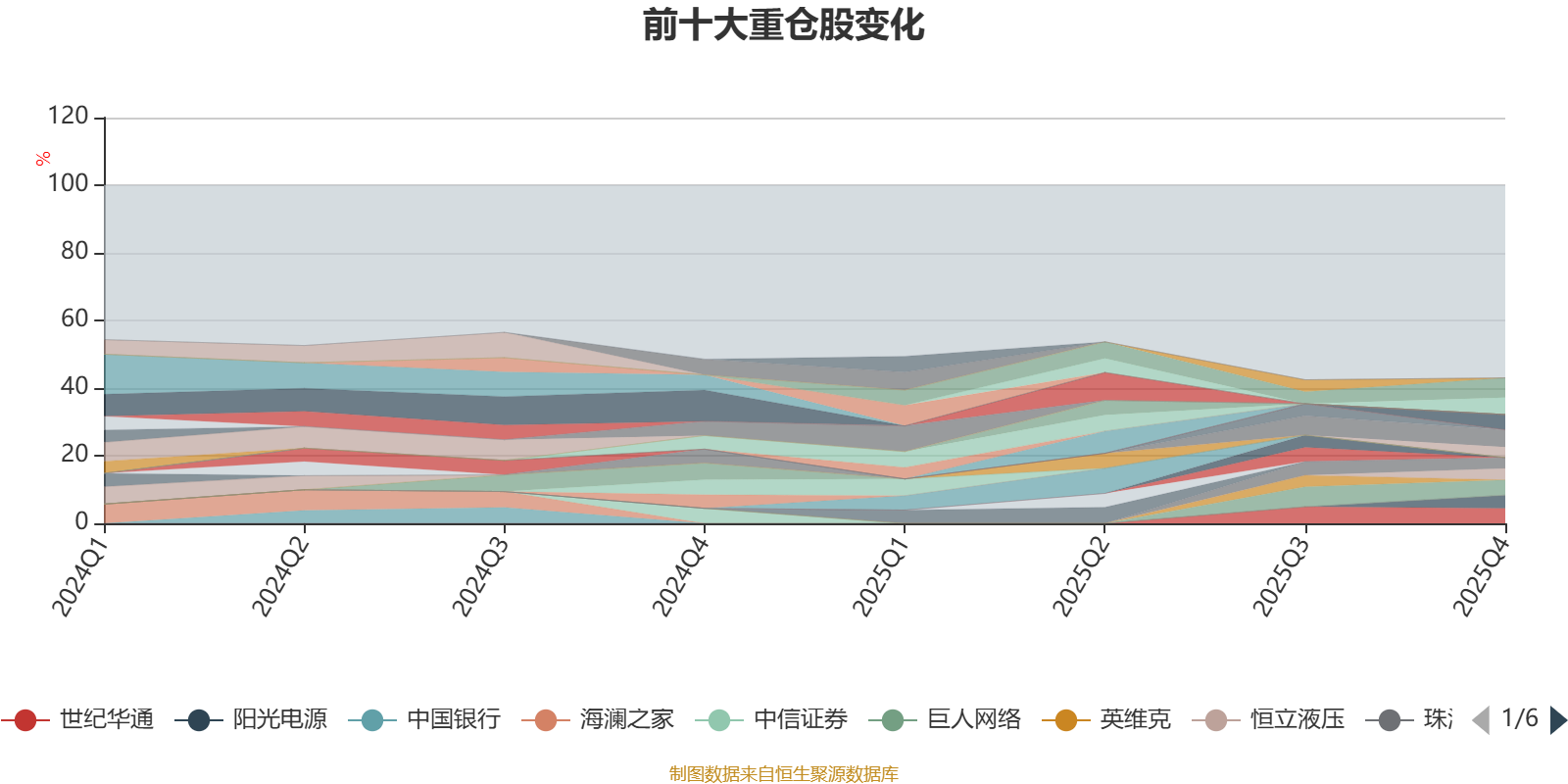 截至2025年末,基金十大重仓股分别是上海银行、寒武纪、中际旭创、中国平安、巨人网络、世纪华通、阳光电源、恒立液压、珠海冠宇、泸州老窖。