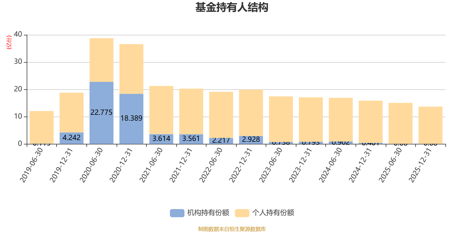 截至2025年12月31日,基金持有人共计8.63万户,合计持有13.7亿份。其中管理人员工持有39.23万份,占比0.03%,机构持有份额占比0.58%,个人投资者占比99.42%。