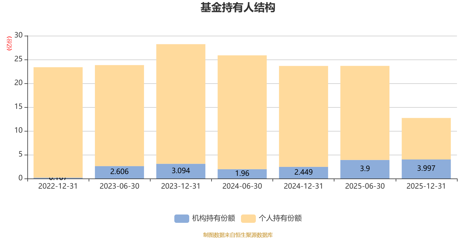 截至2025年12月31日,基金持有人共计9.82万户,合计持有12.72亿份。其中管理人员工持有481.97万份,占比0.38%,机构持有份额占比31.44%,个人投资者占比68.56%。