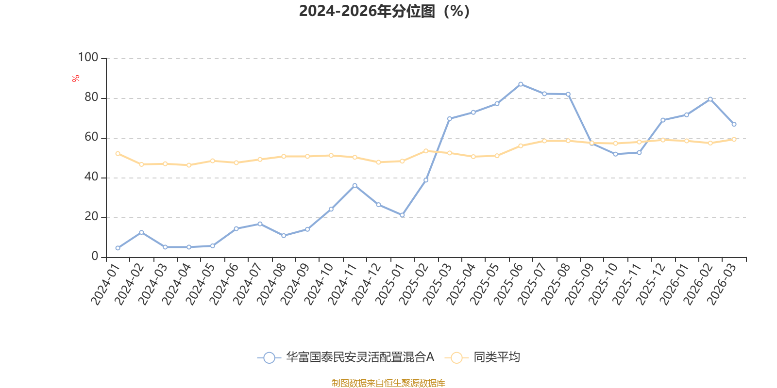 通过所选区间该基金净值增长率分位图,可以观察该基金与同类基金业绩比较情况。图为坐标原点到区间内某时点的净值增长率在同类基金中的分位数。