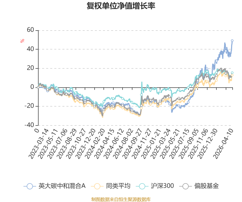 截至4月10日,英大碳中和混合A近三个月复权单位净值增长率为14.14%,位于同类可比基金39/689;近半年复权单位净值增长率为29.86%,位于同类可比基金34/689;近一年复权单位净值增长率为97.97%,位于同类可比基金38/685;近三年复权单位净值增长率为46.87%,位于同类可比基金58/417。