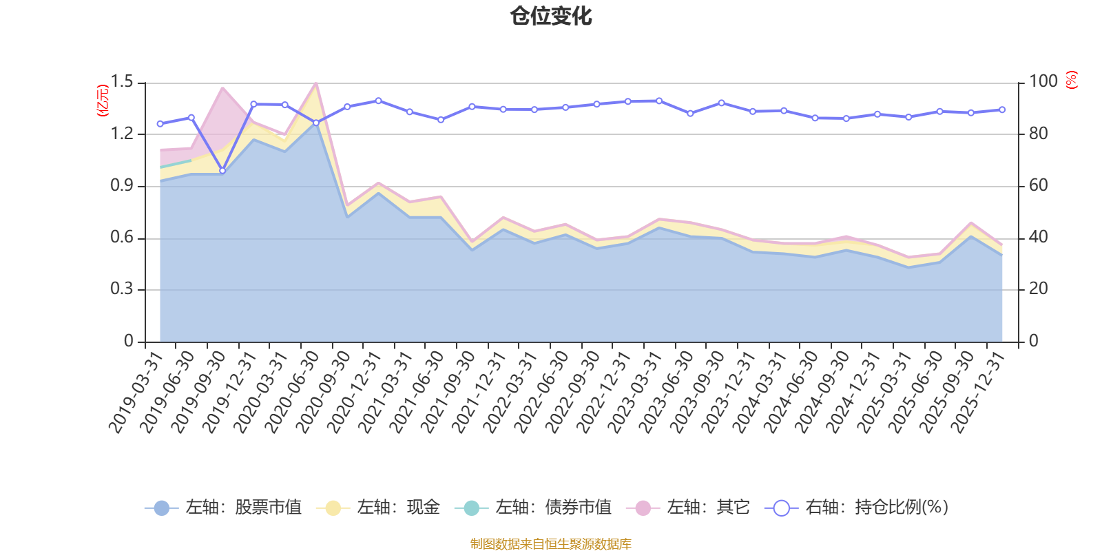 据定期报告数据统计,近三年平均股票仓位为88.78%,同类平均为72.57%。2020年末基金达到93.04%的最高仓位,2019年三季度末最低,为66.07%。