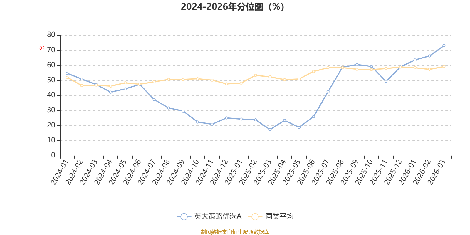 通过所选区间该基金净值增长率分位图,可以观察该基金与同类基金业绩比较情况。图为坐标原点到区间内某时点的净值增长率在同类基金中的分位数。