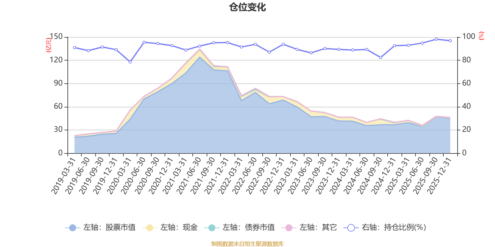 据定期报告数据统计,近三年平均股票仓位为90.94%,同类平均为86.17%。2025年三季度末基金达到98.12%的最高仓位,2020年一季度末最低,为78.62%。
