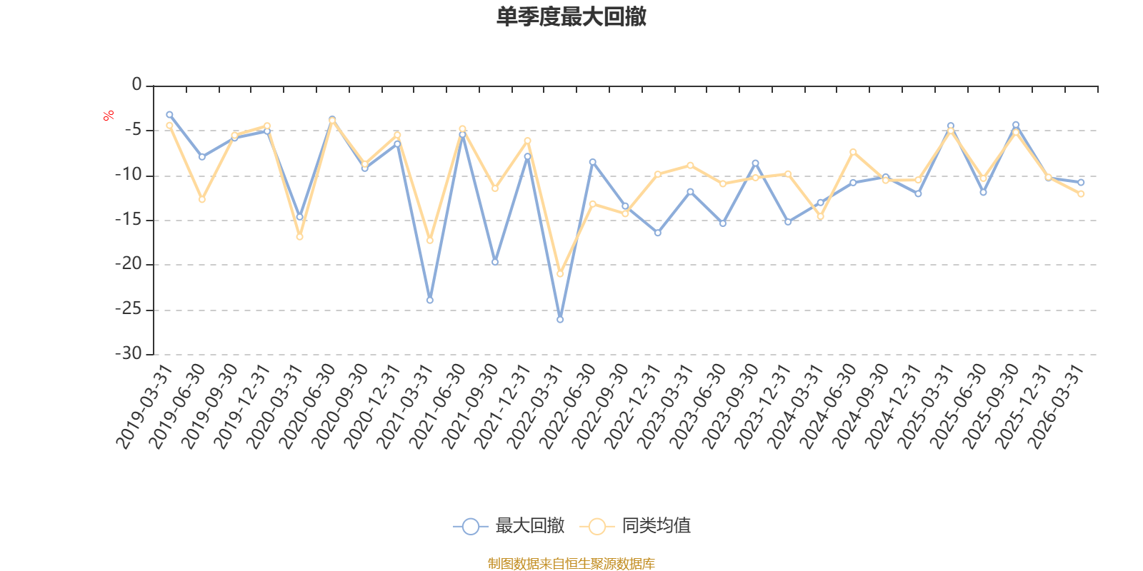 截至4月9日,基金近三年最大回撤为34.2%,同类可比基金排名79/125。单季度最大回撤出现在2022年一季度,为26.11%。