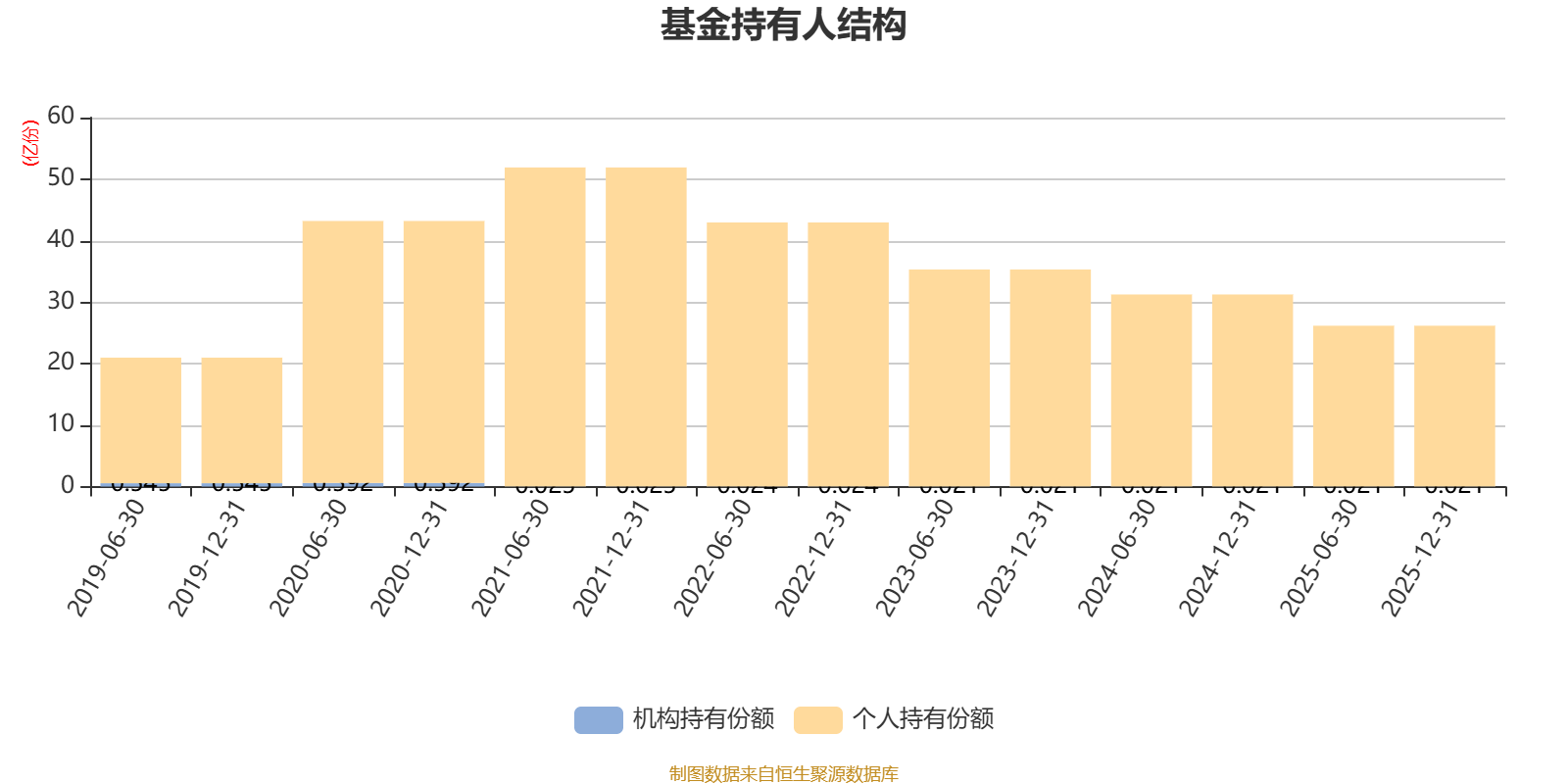 截至2025年12月31日,基金持有人共计10.23万户,合计持有26.16亿份。其中管理人员工持有490.68万份,占比0.19%,机构持有份额占比0.08%,个人投资者占比99.92%。