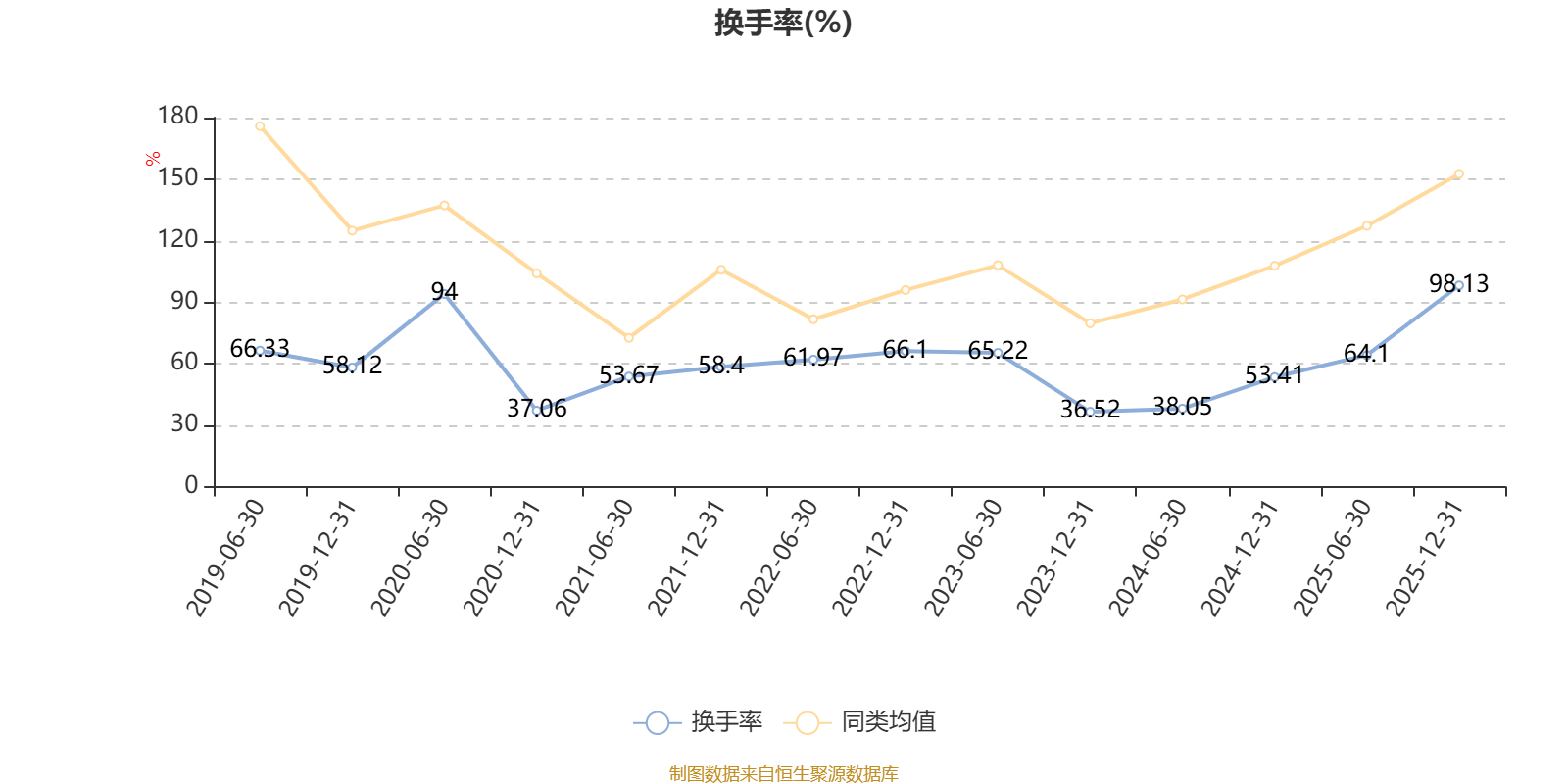 截至2025年12月31日,基金最近一年换手率约160.26%,持续低于同类均值。