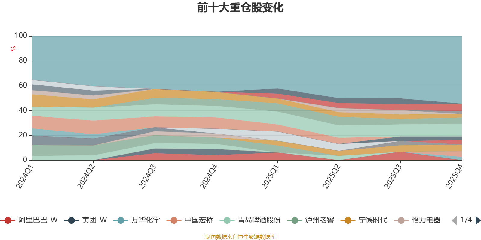 截至2025年末,基金十大重仓股分别是腾讯控股、紫金矿业、宁德时代、美的集团、中国宏桥、环旭电子、康方生物、贵州茅台、万华化学、北方华创。