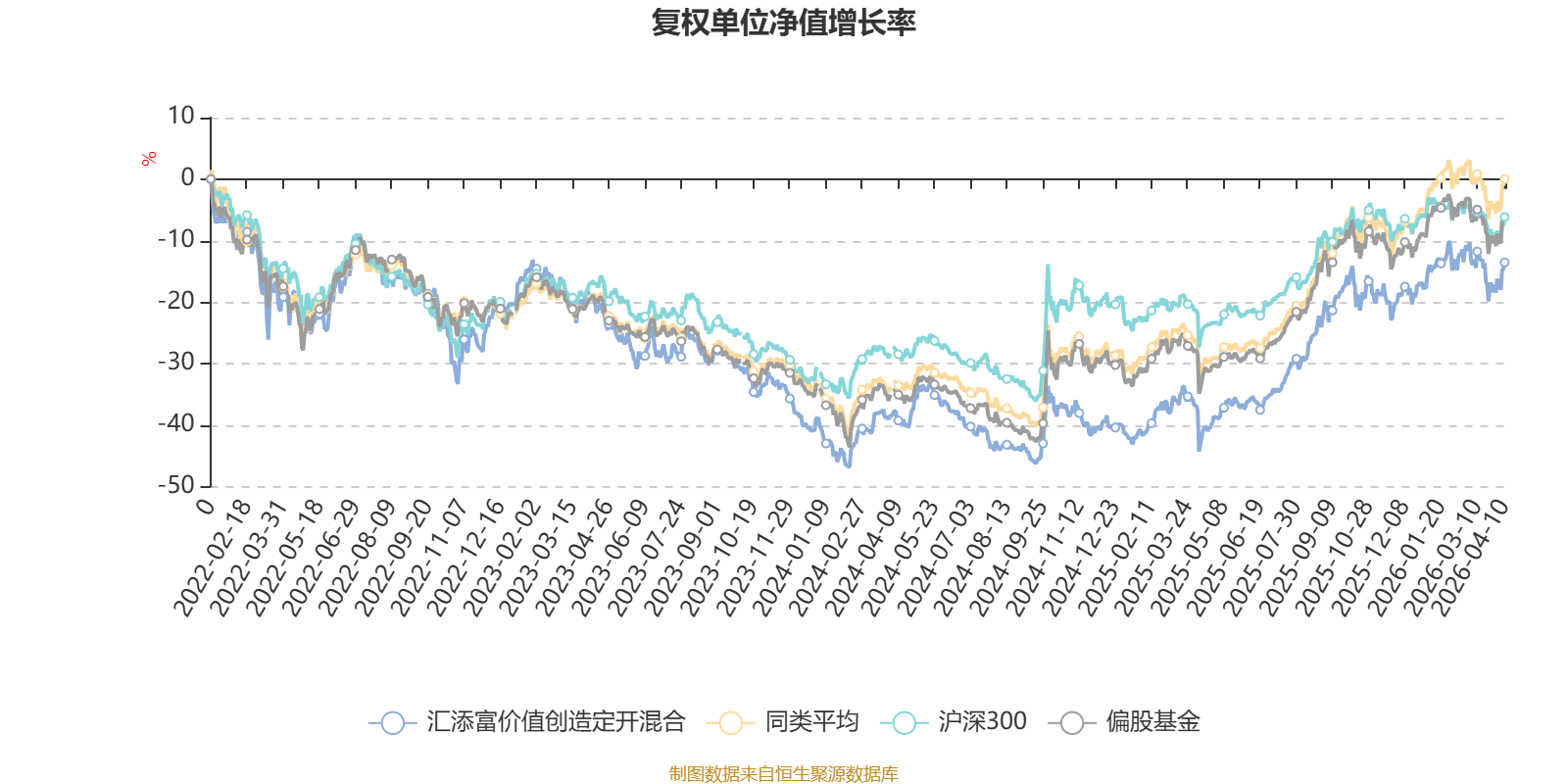 截至4月10日,汇添富价值创造定开混合近三个月复权单位净值增长率为1.19%,位于同类可比基金55/130;近半年复权单位净值增长率为3.55%,位于同类可比基金59/130;近一年复权单位净值增长率为46.61%,位于同类可比基金43/130;近三年复权单位净值增长率为7.57%,位于同类可比基金90/126。