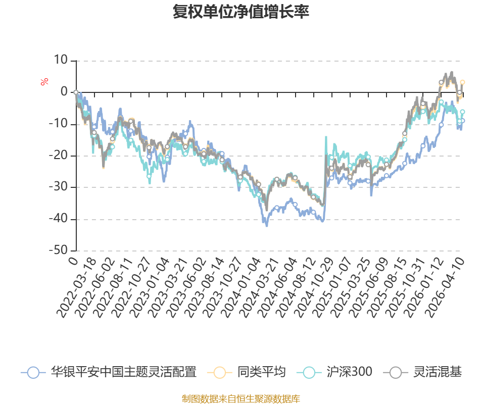 该基金属于灵活配置型基金。截至4月10日,单位净值为1.27元。基金经理是王玉珏,目前管理的2只基金近一年均为正收益。其中,截至4月10日,华银平安中国主题灵活配置近一年复权单位净值增长率最高,达29.59%;华银外延增长主题灵活配置最低,为25.46%。
