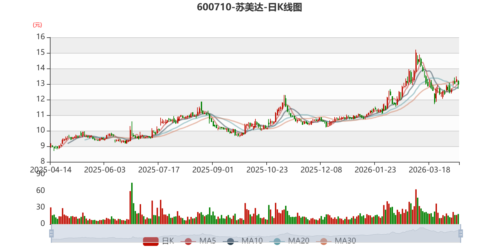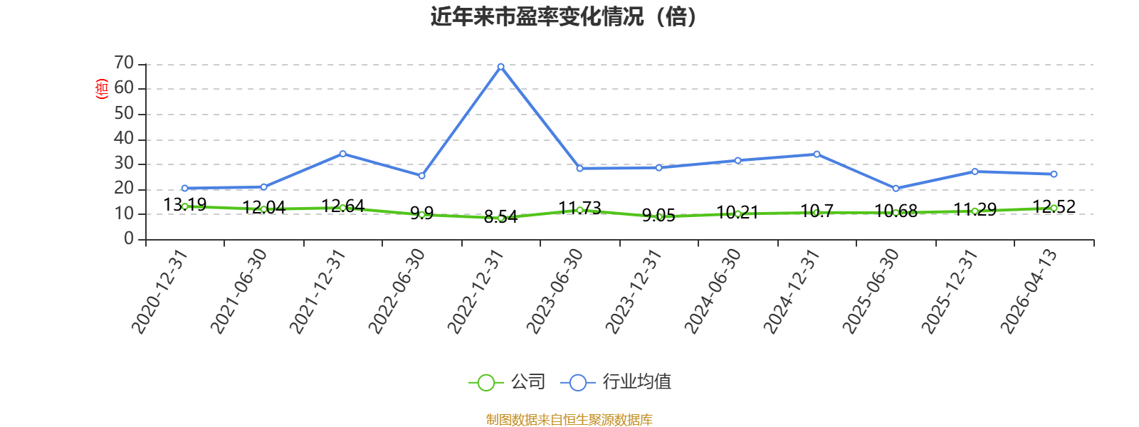 以4月13日收盘价计算,苏美达目前市盈率(TTM)约为12.52倍,市净率(LF)约1.99倍,市销率(TTM)约0.14倍。