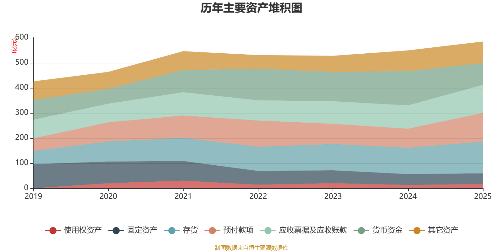 资产重大变化方面,截至2025年末,公司货币资金较上年末减少36.28%,占公司总资产比重下降9.98个百分点;预付款项较上年末增加50.8%,占公司总资产比重上升5.75个百分点;存货较上年末增加19.78%,占公司总资产比重上升2.4个百分点;应收票据及应收账款较上年末增加20.44%,占公司总资产比重上升2.22个百分点。