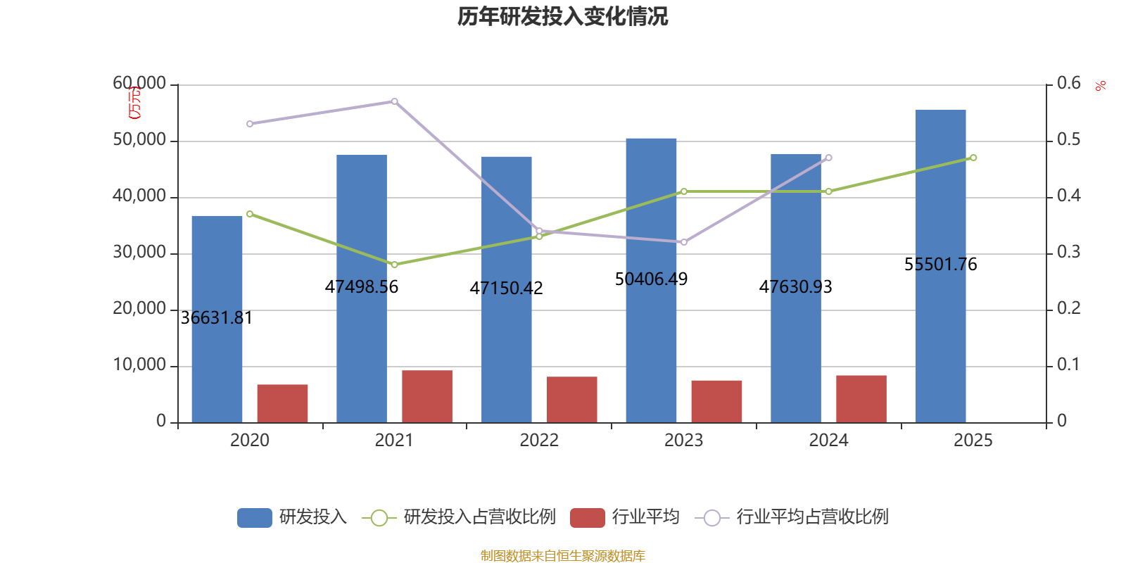 2025年全年,公司研发投入金额为5.55亿元,同比增长16.52%;研发投入占营业收入比例为0.47%,相比上年同期上升0.06个百分点。此外,公司全年研发投入资本化率为25.78%。