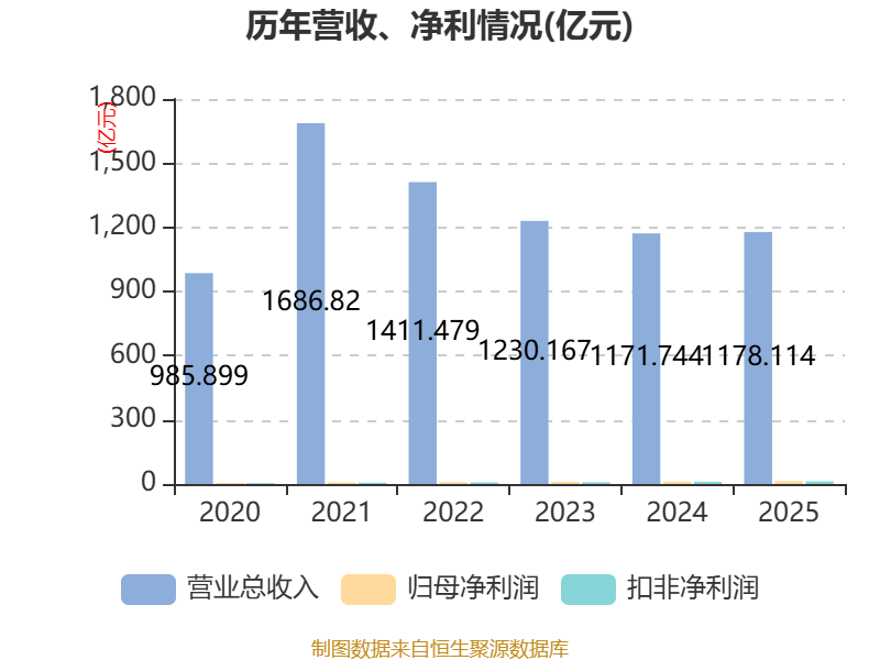 中证智能财讯苏美达(600710)4月14日披露2025年年度报告。2025年,公司实现营业总收入1178.11亿元,同比增长0.54%;归母净利润13.56亿元,同比增长18.05%;扣非净利润12.42亿元,同比增长19.23%;经营活动产生的现金流量净额为-7.02亿元,上年同期为51.67亿元;报告期内,苏美达基本每股收益为1.04元,加权平均净资产收益率为17.03%。公司2025年度分配预案为:拟向全体股东每10股派现4.15元(含税)。