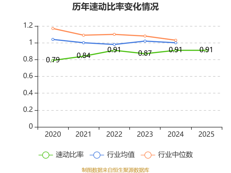 2025年,公司流动比率为1.22,速动比率为0.91。