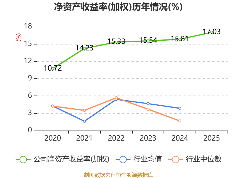数据显示,2025年公司加权平均净资产收益率为17.03%,较上年同期上升1.22个百分点。公司2025年投入资本回报率为17.78%,较上年同期上升1个百分点。