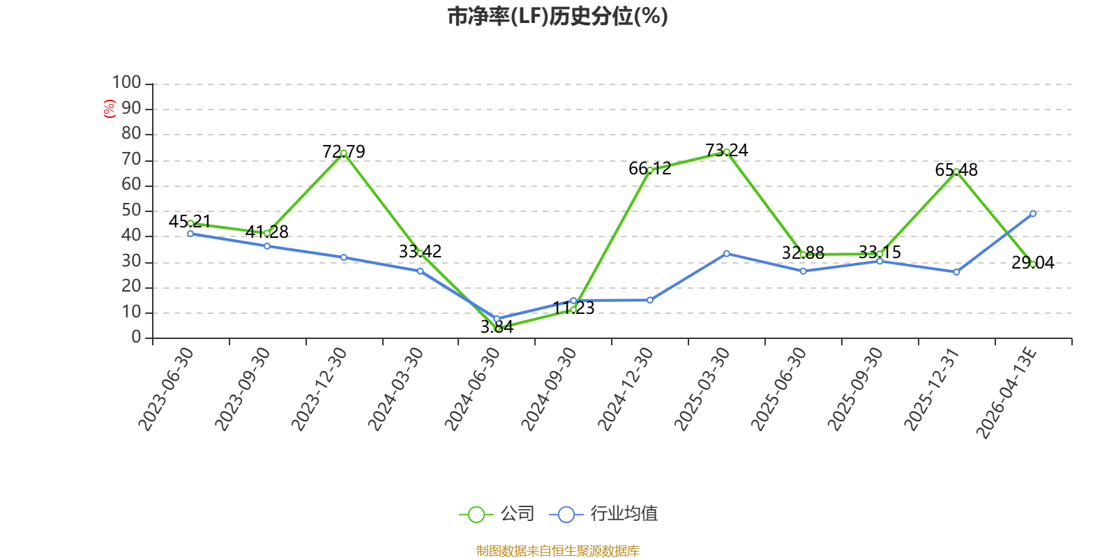 市盈率、市净率为负时,不显示当期分位数,会导致折线图中断。