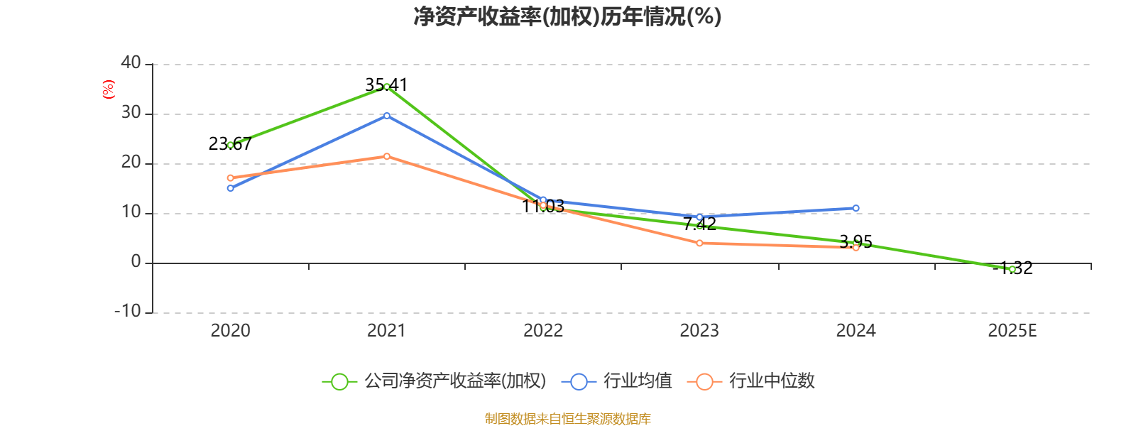 数据显示,2025年公司加权平均净资产收益率为-1.32%,较上年同期下降5.27个百分点。