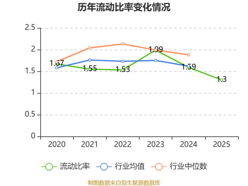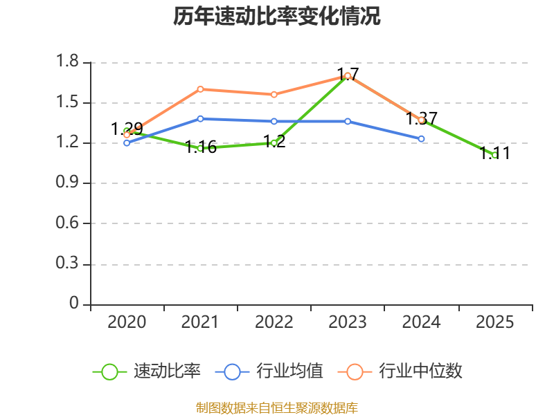 2025年,公司流动比率为1.3,速动比率为1.11。