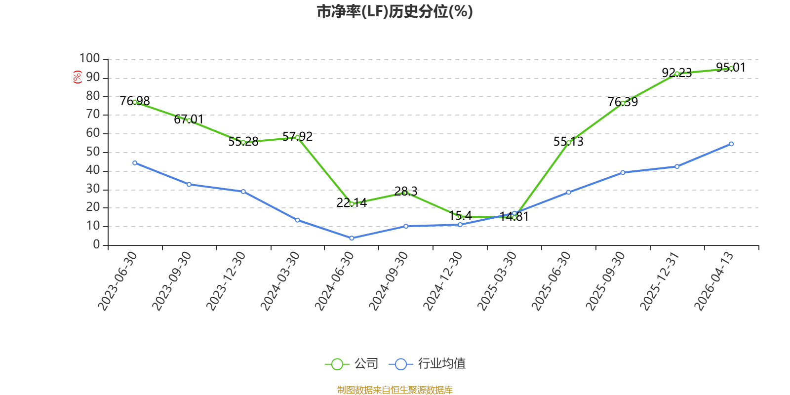 市盈率、市净率为负时,不显示当期分位数,会导致折线图中断。