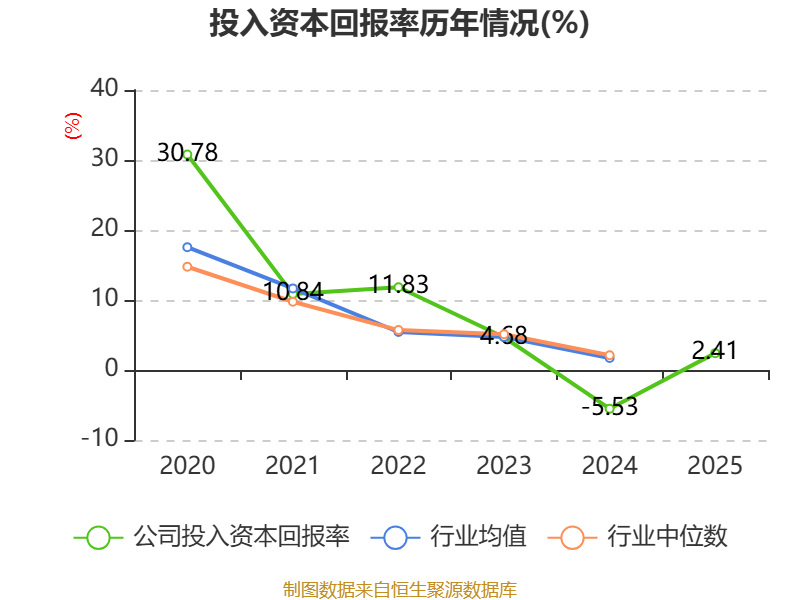 数据显示,2025年公司加权平均净资产收益率为2.72%,较上年同期上升13.53个百分点。公司2025年投入资本回报率为2.41%,较上年同期上升7.94个百分点。
