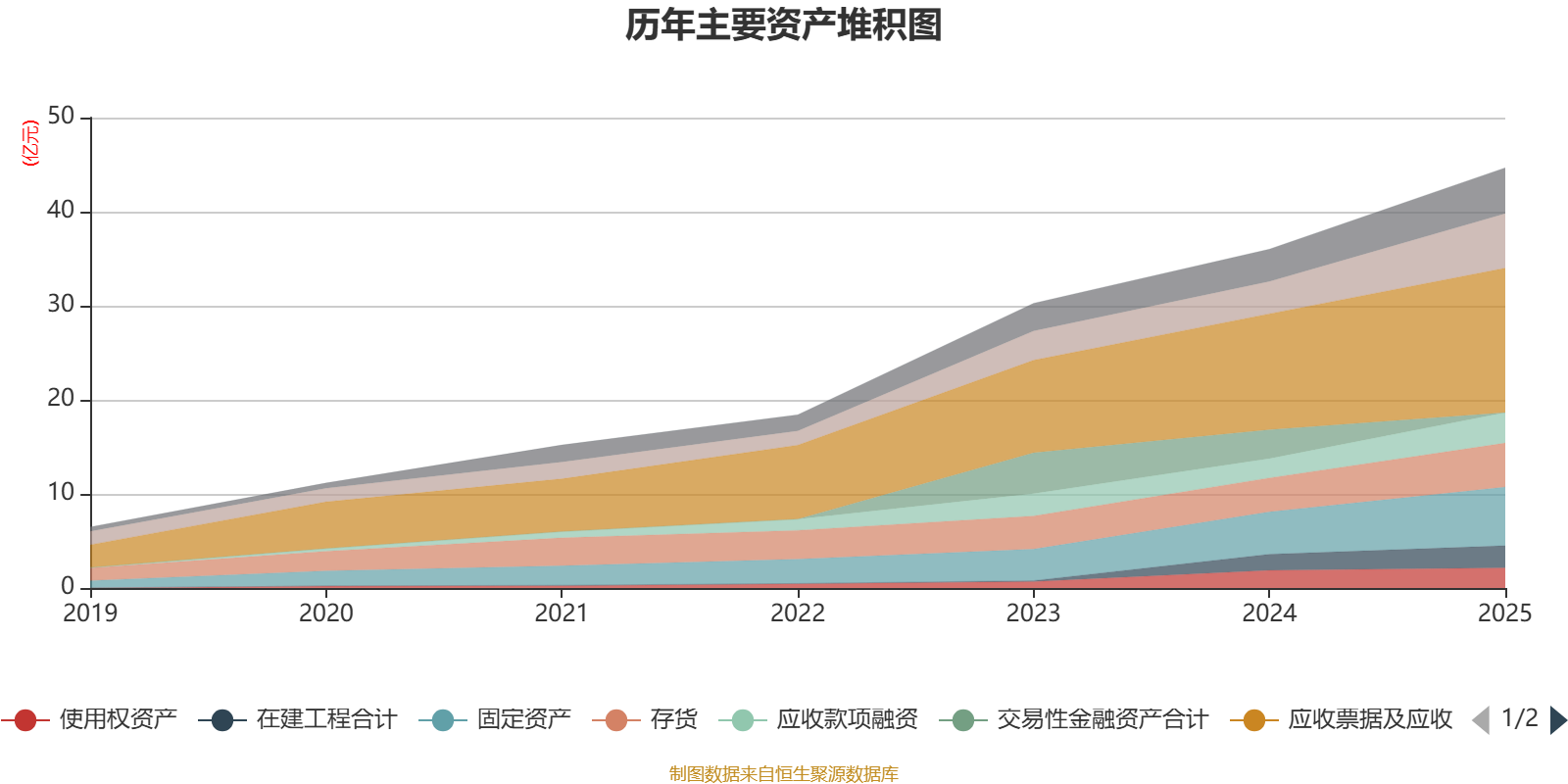 资产重大变化方面,截至2025年末,公司交易性金融资产合计较上年末减少100%,占公司总资产比重下降8.54个百分点;货币资金较上年末增加68.81%,占公司总资产比重上升3.44个百分点;其他流动资产较上年末增加310.91%,占公司总资产比重上升2.7个百分点;应收款项融资较上年末增加57.41%,占公司总资产比重上升1.53个百分点。