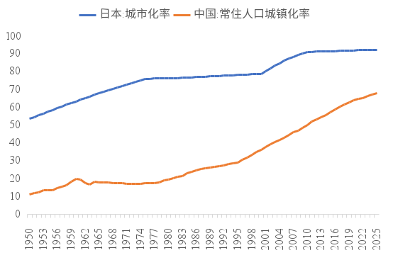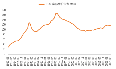 以日本为例,2000-2010年城市化率的提升主要是行政区划调整和町村老龄人口去世造成的被动提升,而非人口主动流入(秦虹,王艳飞,2024)。且日本人口主要流向东京都和大阪,导致这两大城市的房价在2010年以后较为坚挺,而其它城市的房价很弱。因此,日本全国到2025年末实际房价指数大致恢复到2002年中的水平,距离此前高点仍有40%左右差距。