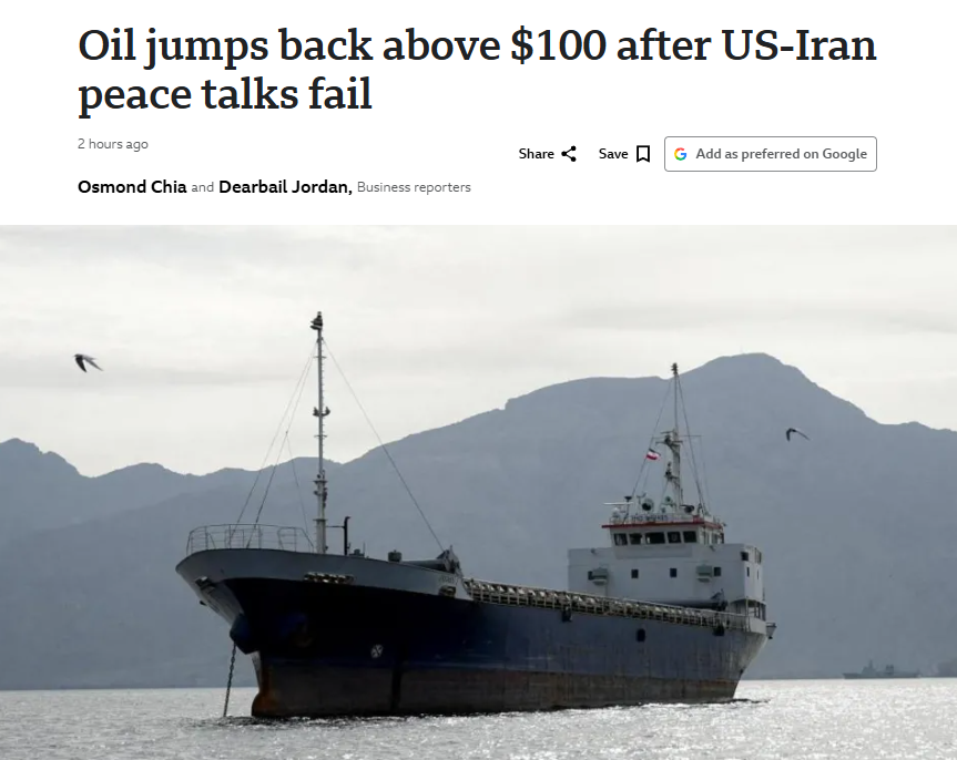 市场反应也来得很快。美联社和路透社都提到,所谓“封锁令”传出后,国际油价迅速升破每桶100美元。4月13日,美国WTI原油和伦敦布伦特原油价格盘中分别站上103美元和102美元。