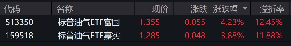 场内2只标普油气ETF早盘涨约4%。