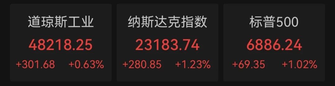 美国三大股指全线收涨