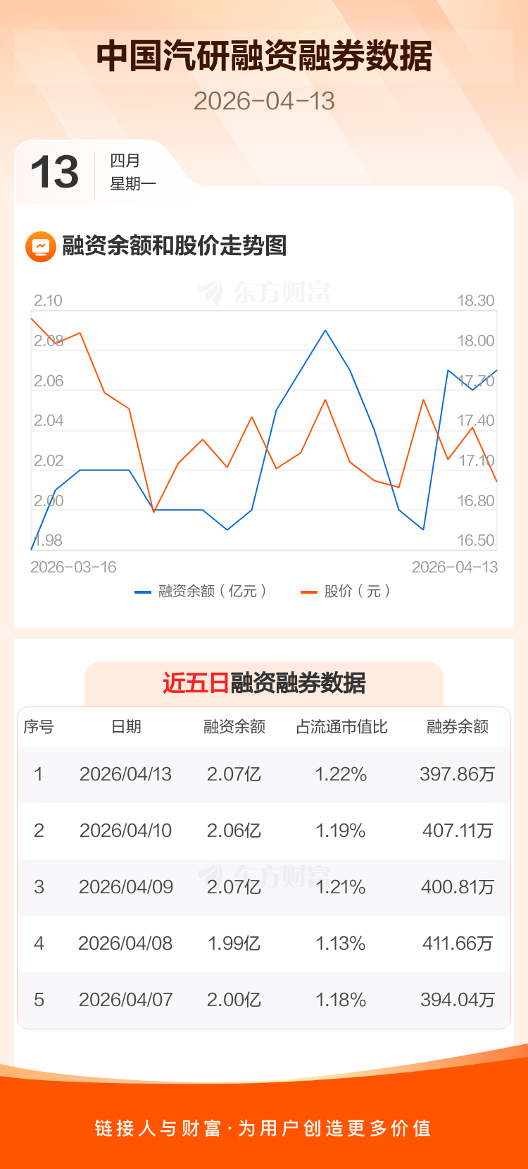 交易所最新数据显示,中国汽研于2026年4月13日获融资买入1057.24万元,融资偿还984.88万元,当日融资净买入72.36万元。目前,该股融资余额2.07亿,占流通市值比例为1.22%。