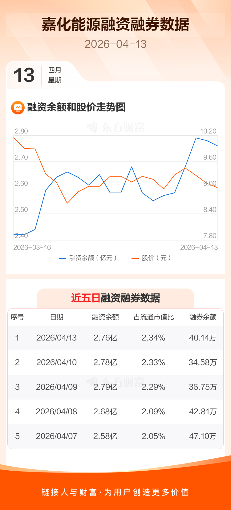 交易所最新数据显示,嘉化能源于2026年4月13日获融资买入1185.75万元,融资偿还1410.73万元,当日融资净偿还224.98万元。目前,该股融资余额2.76亿,占流通市值比例为2.34%。