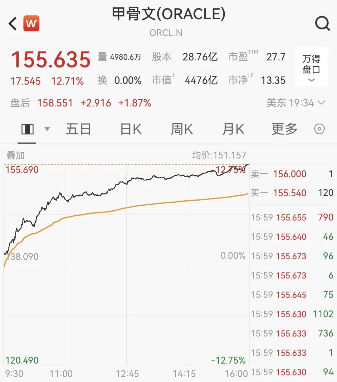 【导读】美股大涨,纳指九连涨!甲骨文飙涨超12%!油价回落