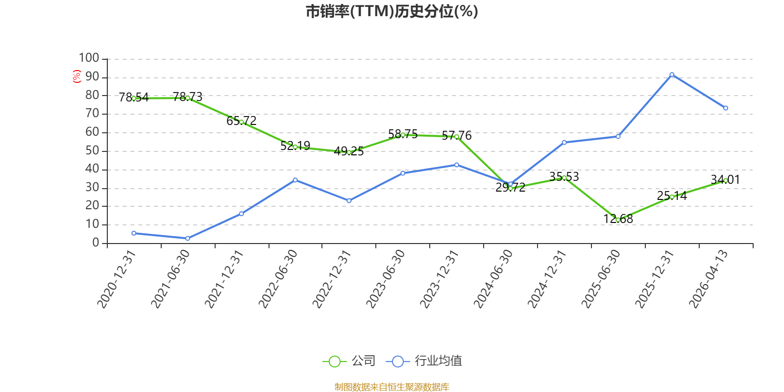 以4月13日收盘价计算,上海临港目前市盈率(TTM)约为25.93倍,市净率(LF)约1.51倍,市销率(TTM)约3.17倍。