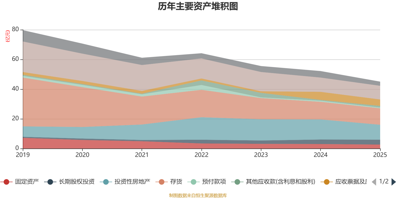 资产重大变化方面,截至2025年末,公司长期应收款较上年末减少100%,占公司总资产比重下降4.93个百分点;投资性房地产较上年末减少25.72%,占公司总资产比重下降3.63个百分点;一年内到期的非流动资产占公司总资产的2.21%,上年末为0;货币资金较上年末减少4.31%,占公司总资产比重上升2.01个百分点。