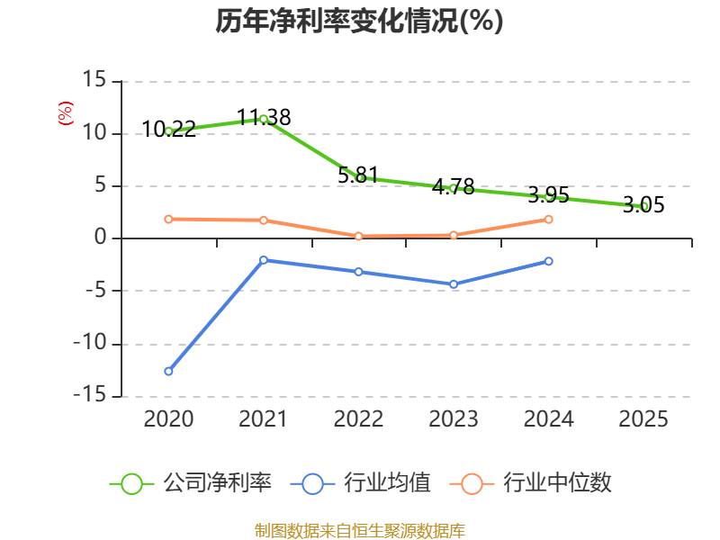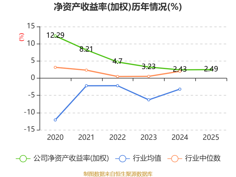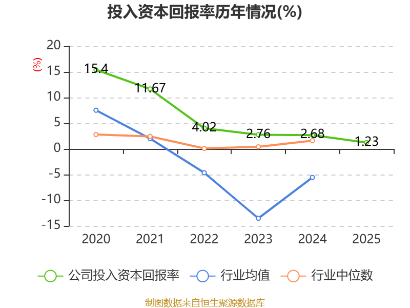数据显示,2025年公司加权平均净资产收益率为2.49%,较上年同期上升0.06个百分点。公司2025年投入资本回报率为1.23%,较上年同期下降1.45个百分点。