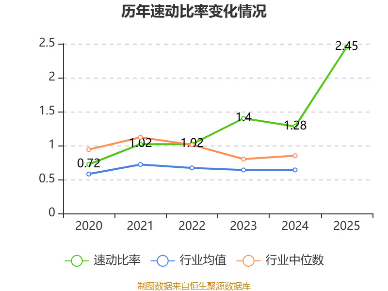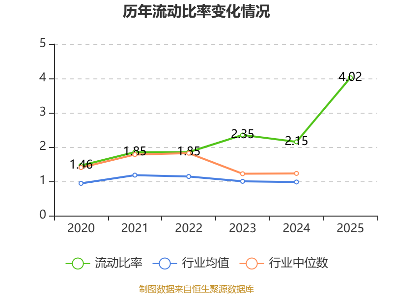 2025年,公司流动比率为4.02,速动比率为2.45。